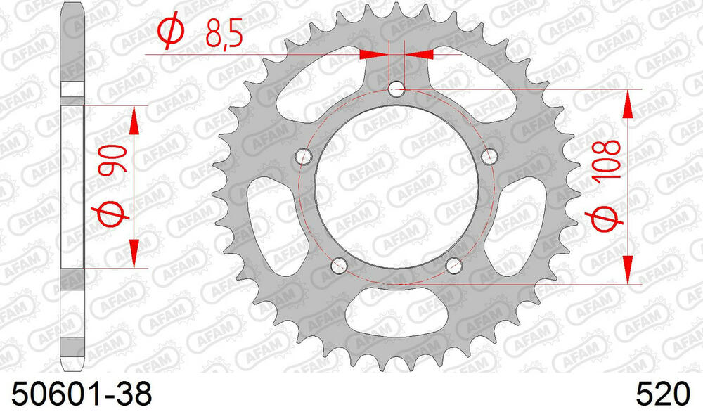 - hinten AFAM 520 Stahl Kettenrad 38 Zähne