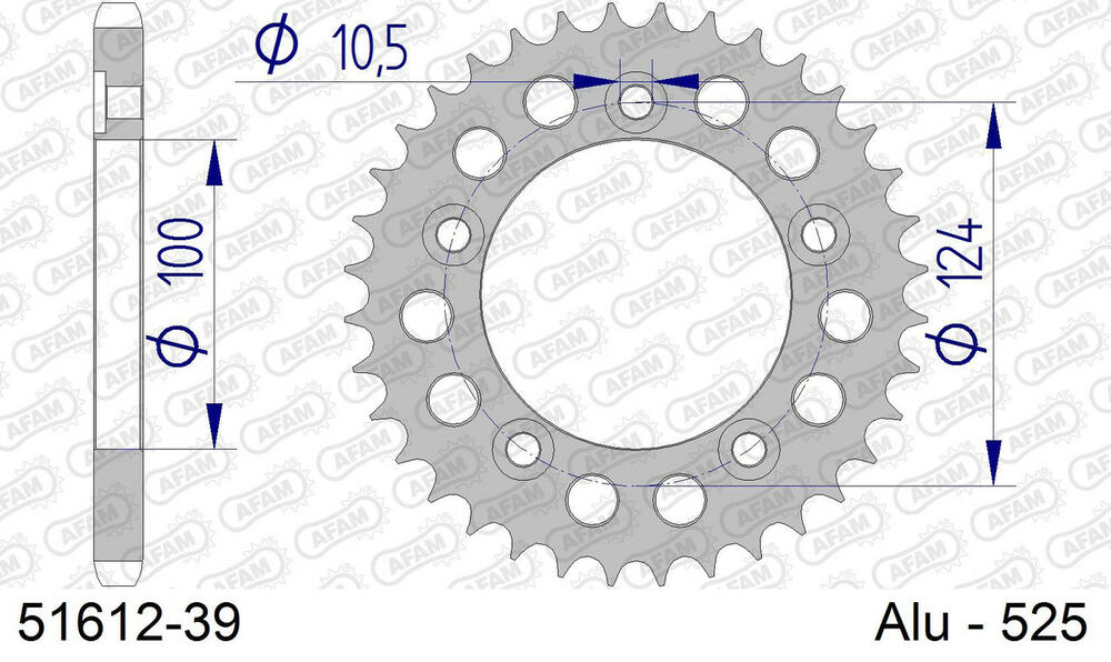 - hinten AFAM 525 Aluminium Kettenrad 39 Zähne