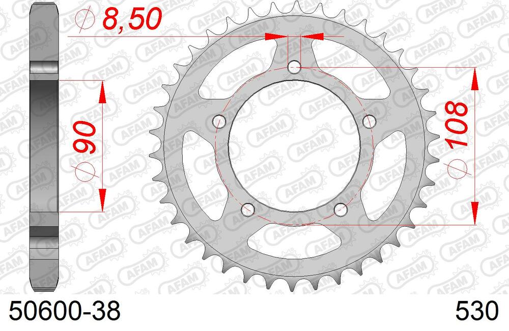 - hinten AFAM 530 Stahl Kettenrad 38 Zähne