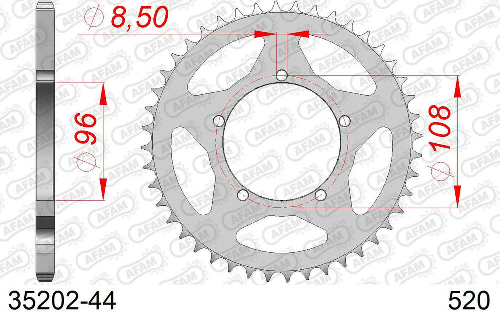 - hinten AFAM 520 Stahl Kettenrad 44 Zähne