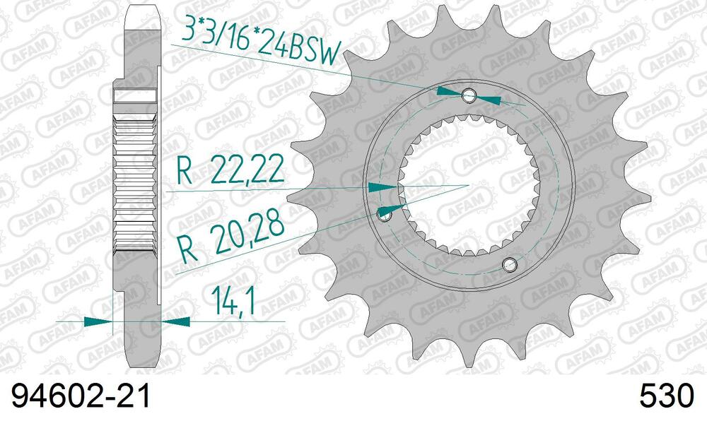 - vorne AFAM 530 Stahl Kettenrad / Ritzel 21 Zähne