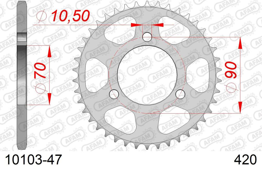 - hinten AFAM 420 Stahl Kettenrad 47 Zähne