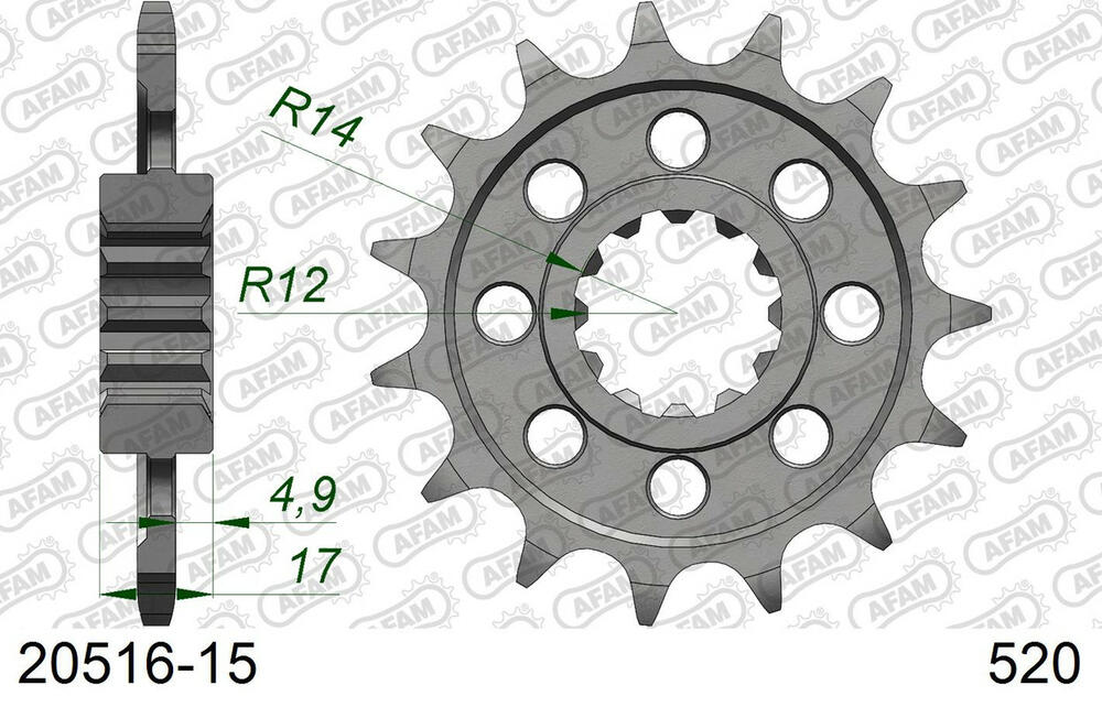 - vorne AFAM 520 Stahl Kettenrad / Ritzel 15 Zähne