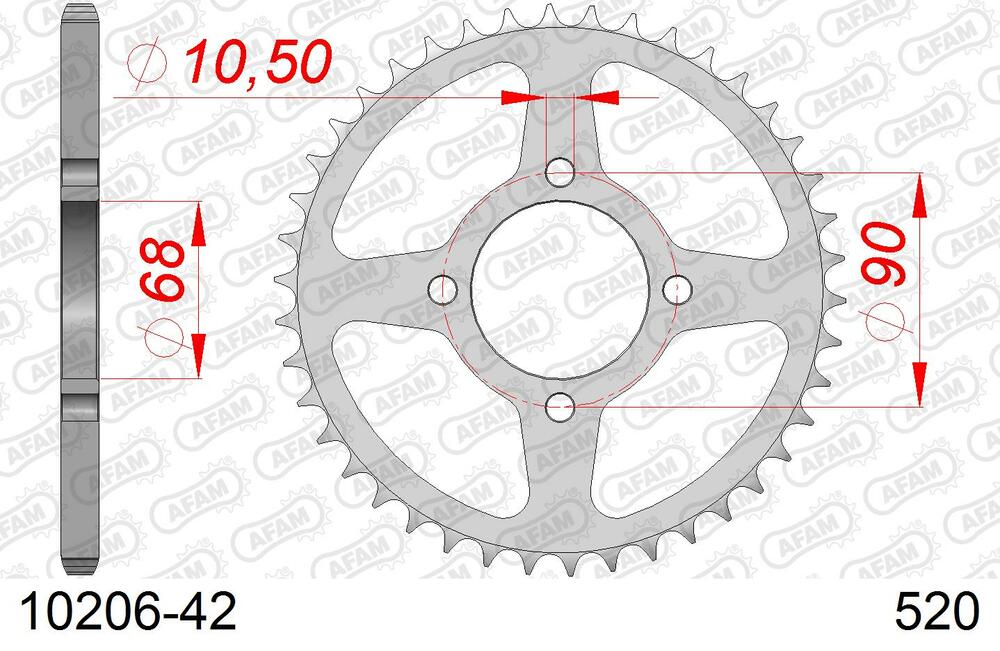 - hinten AFAM 520 Stahl Kettenrad 42 Zähne