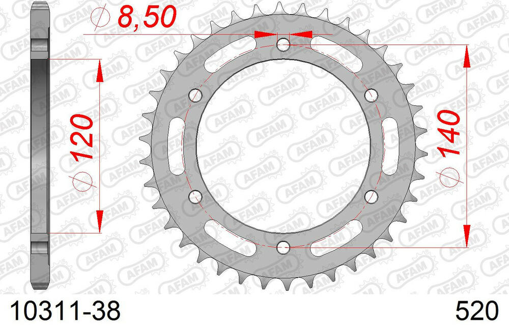 - hinten AFAM 520 Stahl Kettenrad 38 Zähne