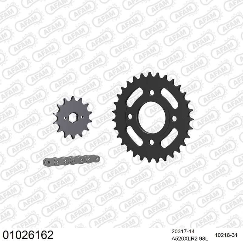 AFAM Kettenkit für Motorräder mit hochwertiger AFAM 520 Antriebskette vom Typ XLR2 inklusive passendem Nietschloss (Hohlbolzen).