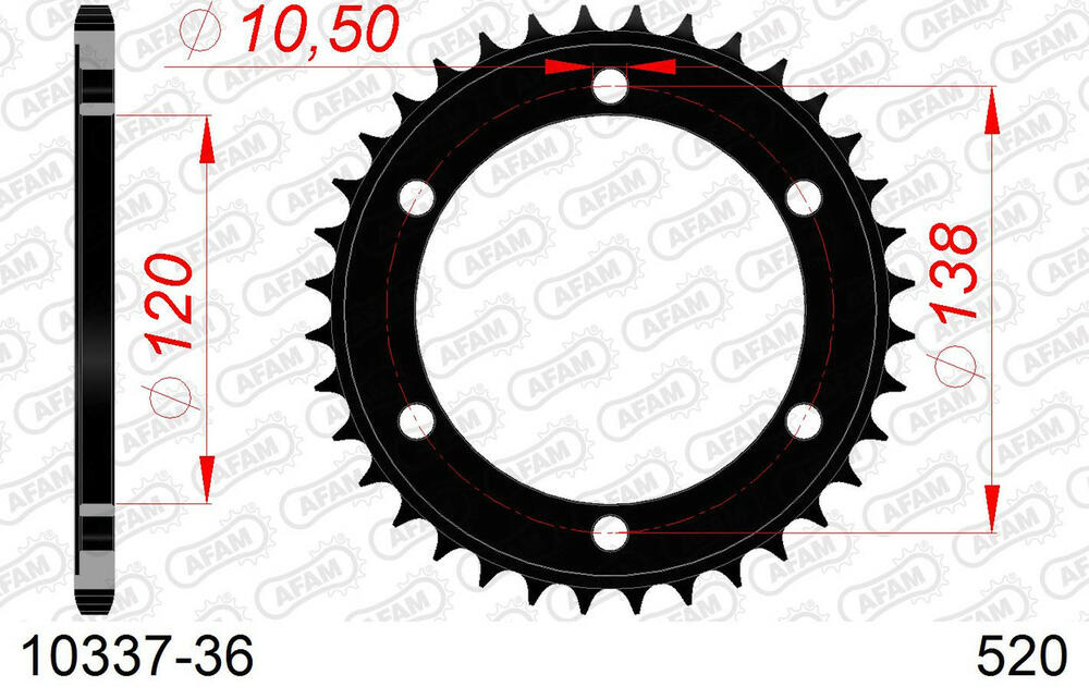 - hinten AFAM 520 Stahl Kettenrad 36 Zähne