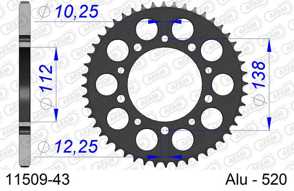 - hinten AFAM 520 Aluminium Kettenrad 43 Zähne