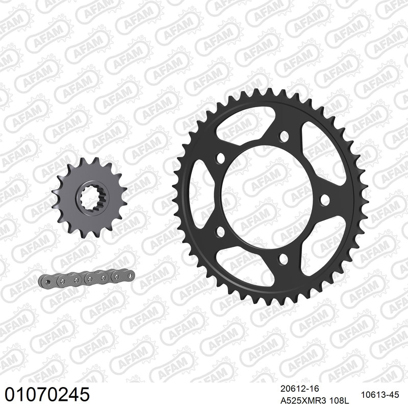 AFAM Kettenkit für Motorräder mit hochwertiger AFAM 525 Antriebskette vom Typ XMR3 inklusive passendem Nietschloss (Hohlbolzen).