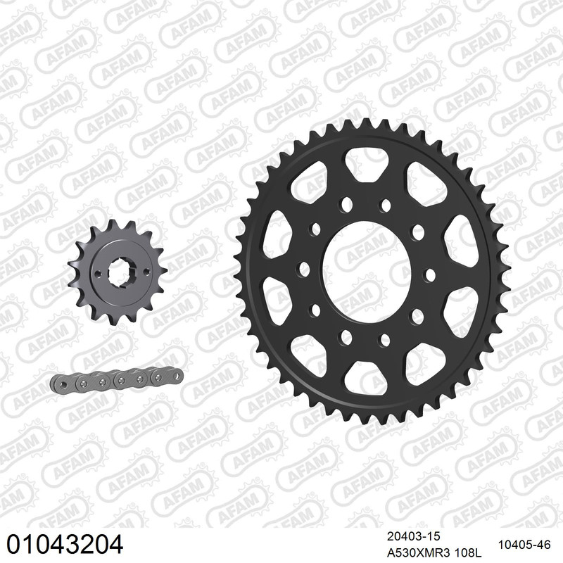AFAM Kettenkit für Motorräder mit hochwertiger AFAM 530 Antriebskette vom Typ XMR3 inklusive passendem Nietschloss (Hohlbolzen).