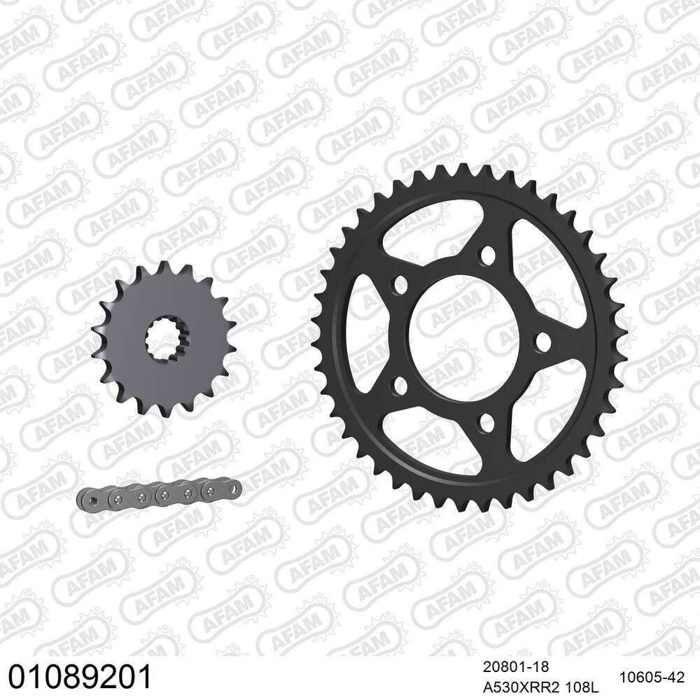 AFAM Kettenkit für Motorräder mit hochwertiger AFAM 530 Antriebskette vom Typ XRR2 inklusive passendem Nietschloss (Hohlbolzen).