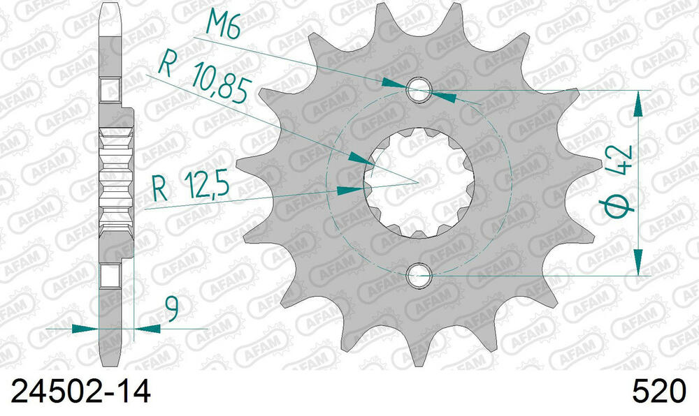 - vorne AFAM 520 Stahl Kettenrad / Ritzel 14 Zähne