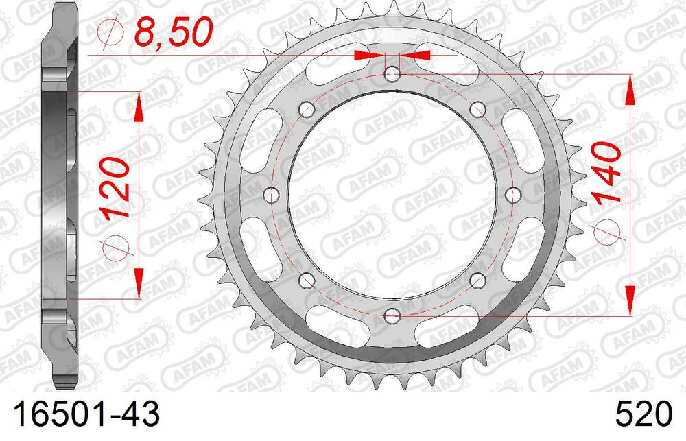 - hinten AFAM 520 Stahl Kettenrad 43 Zähne