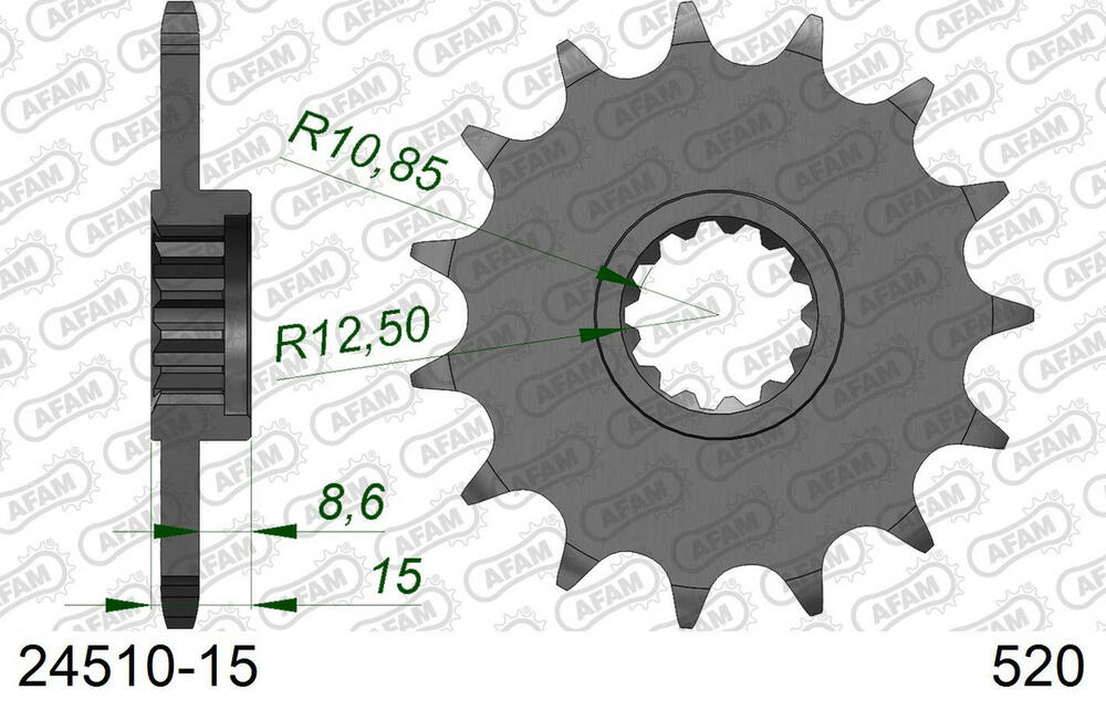 - vorne AFAM 520 Stahl Kettenrad / Ritzel 15 Zähne