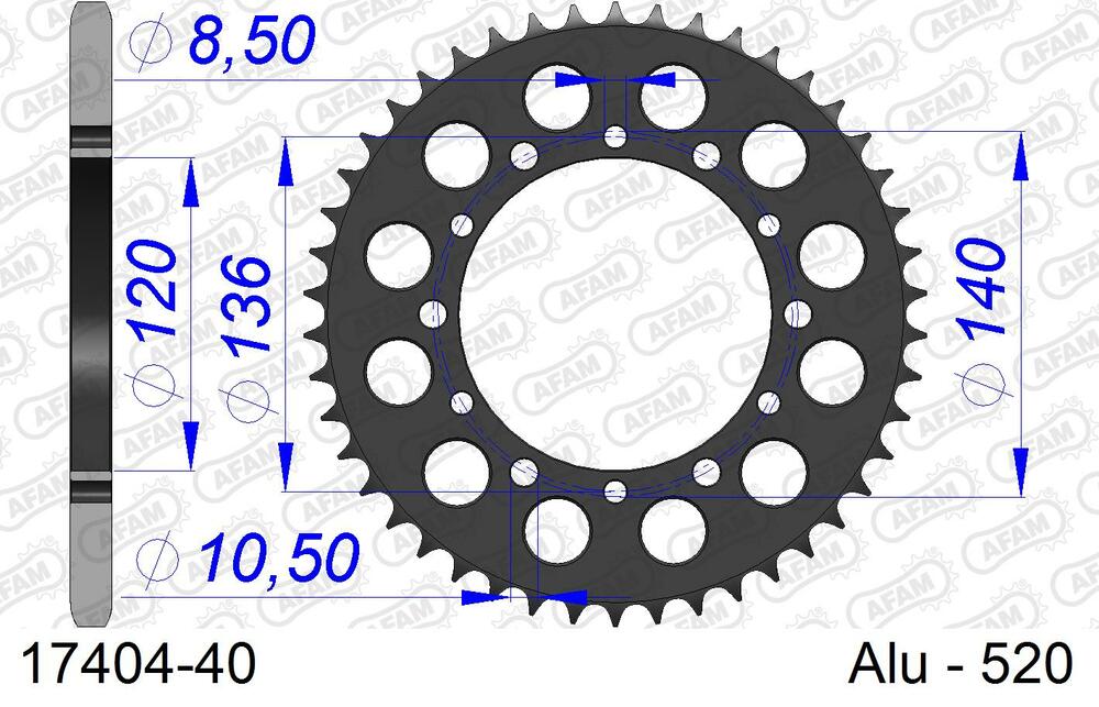 - hinten AFAM 520 Aluminium Kettenrad 40 Zähne