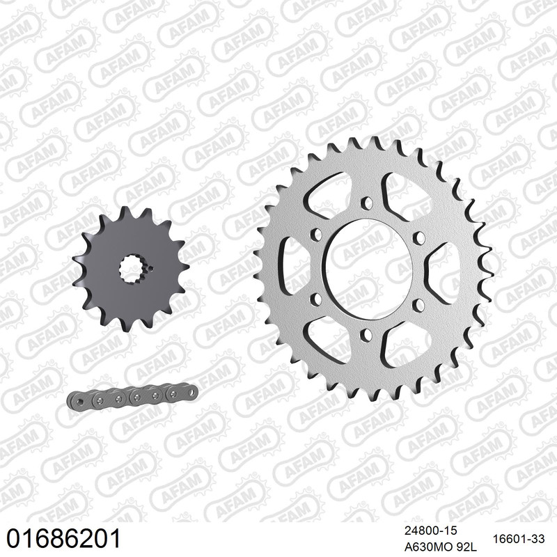 AFAM Kettenkit für Motorräder mit hochwertiger AFAM 630 Antriebskette vom Typ MO inklusive passendem Nietschloss (Vollbolzen).