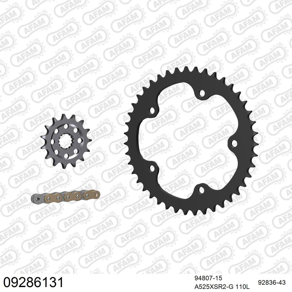 AFAM Kettenkit für Motorräder mit hochwertiger AFAM 525 Antriebskette vom Typ XSR2-G inklusive passendem Nietschloss (Hohlbolzen).