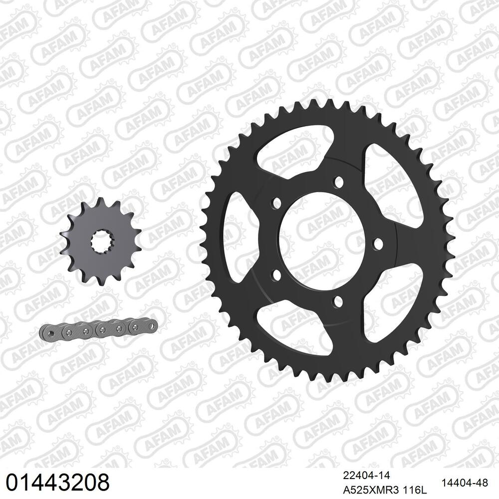 AFAM Kettenkit für Motorräder mit hochwertiger AFAM 525 Antriebskette vom Typ XMR3 inklusive passendem Nietschloss (Hohlbolzen).