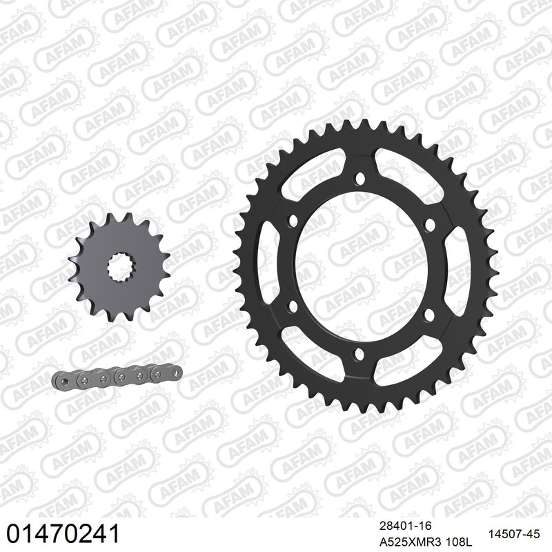 AFAM Kettenkit für Motorräder mit hochwertiger AFAM 525 Antriebskette vom Typ XMR3 inklusive passendem Nietschloss (Hohlbolzen).