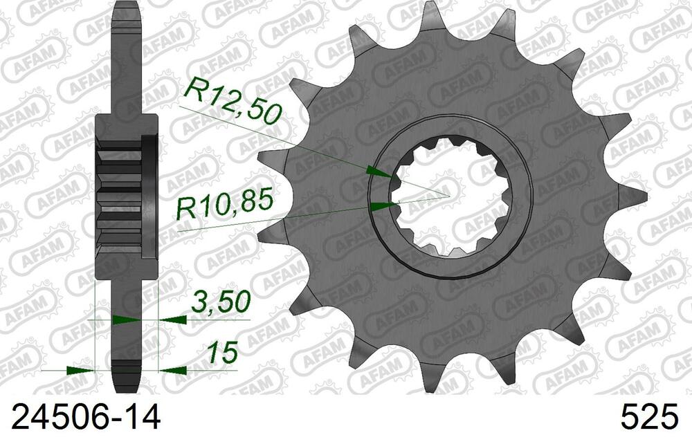 - vorne AFAM 525 Stahl Kettenrad / Ritzel 14 Zähne