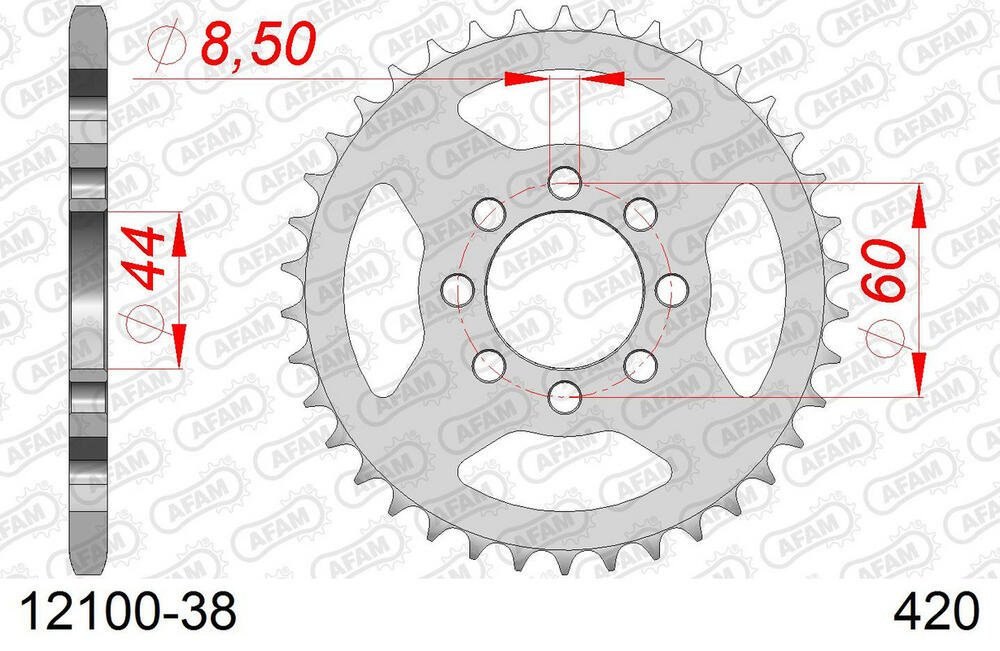 - hinten AFAM 420 Stahl Kettenrad 38 Zähne