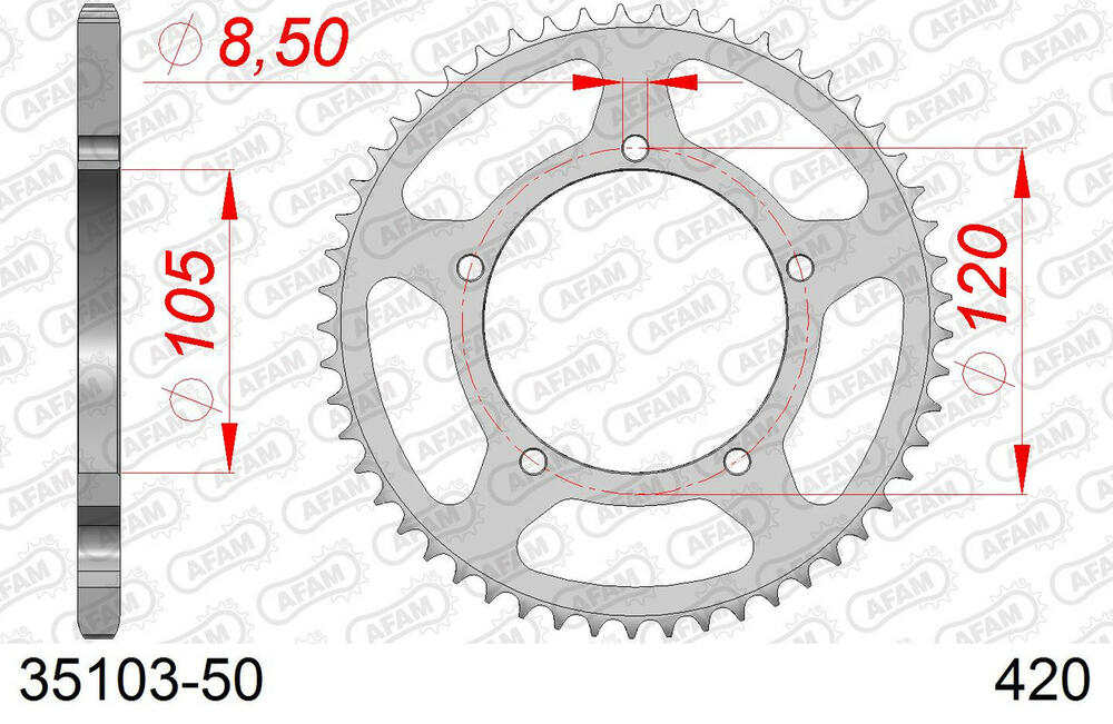 - hinten AFAM 420 Stahl Kettenrad 50 Zähne