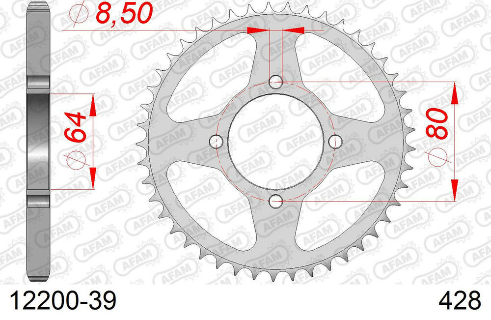 - hinten AFAM 428 Stahl Kettenrad 39 Zähne