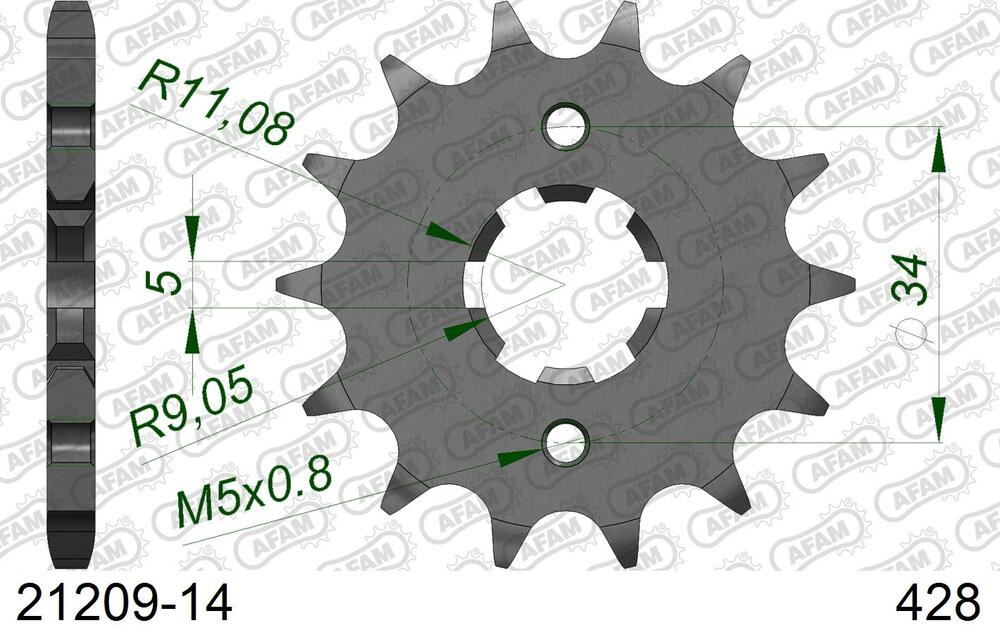 - vorne AFAM 428 Stahl Kettenrad / Ritzel 14 Zähne