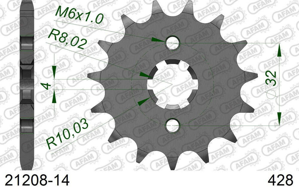 - vorne AFAM 428 Stahl Kettenrad / Ritzel 14 Zähne