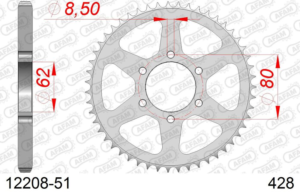 - hinten AFAM 428 Stahl Kettenrad 51 Zähne