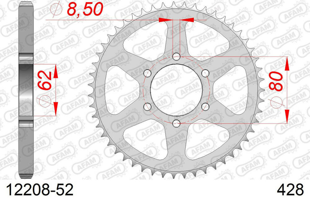 - hinten AFAM 428 Stahl Kettenrad 52 Zähne