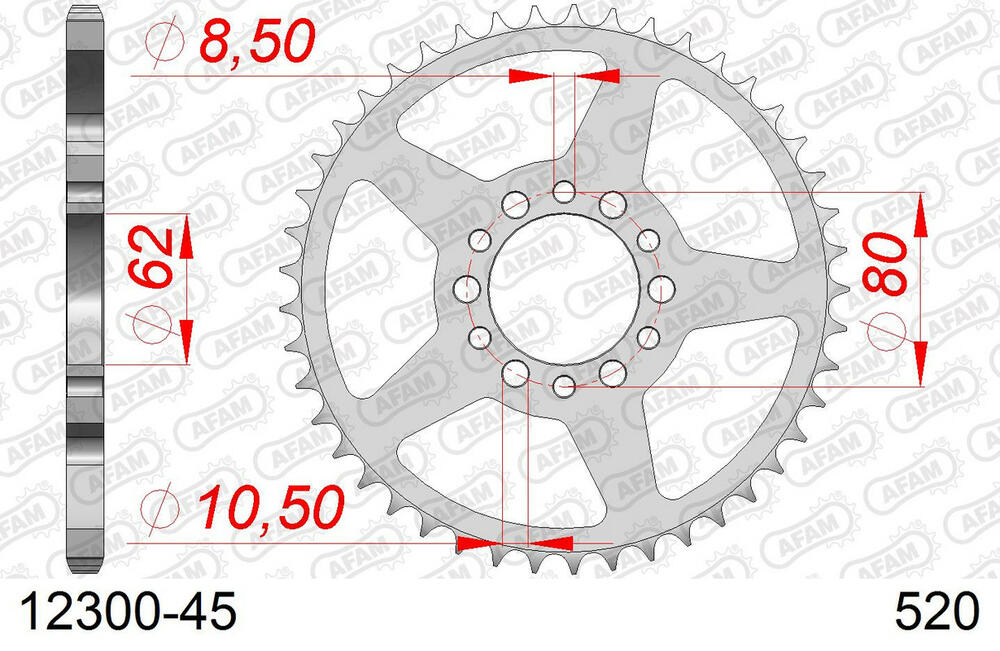 - hinten AFAM 520 Stahl Kettenrad 45 Zähne