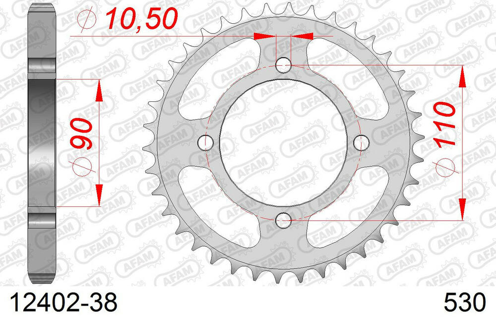 - hinten AFAM 530 Stahl Kettenrad 38 Zähne