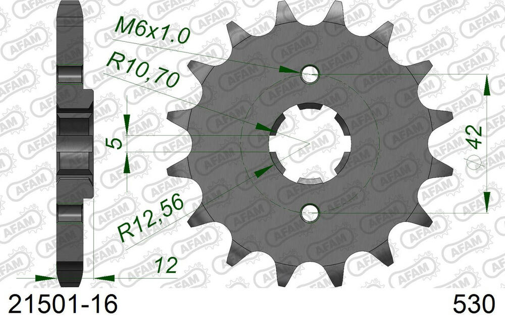 - vorne AFAM 530 Stahl Kettenrad / Ritzel 16 Zähne