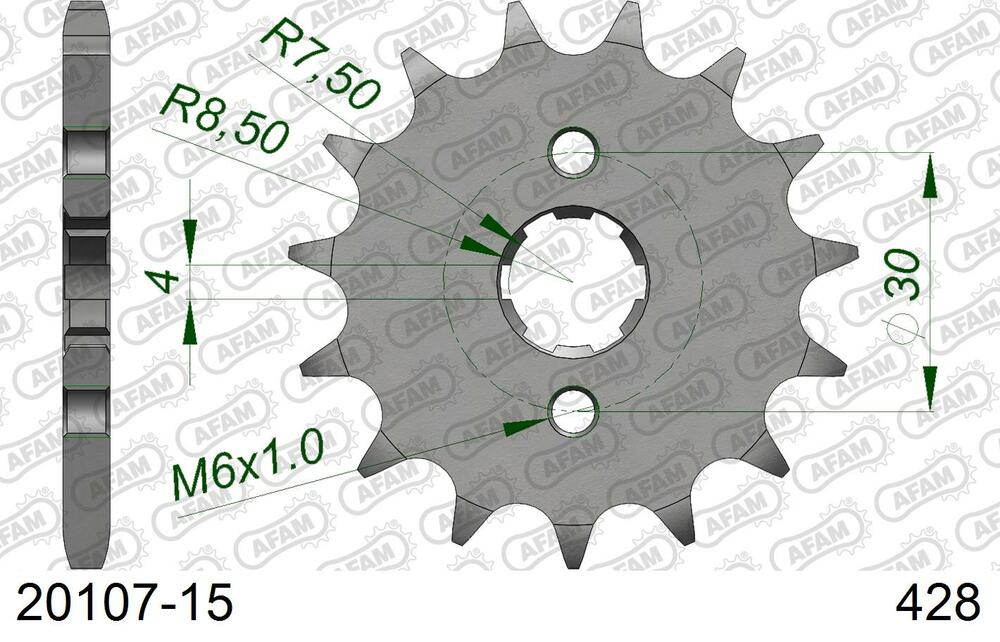 - vorne AFAM 428 Stahl Kettenrad / Ritzel 15 Zähne