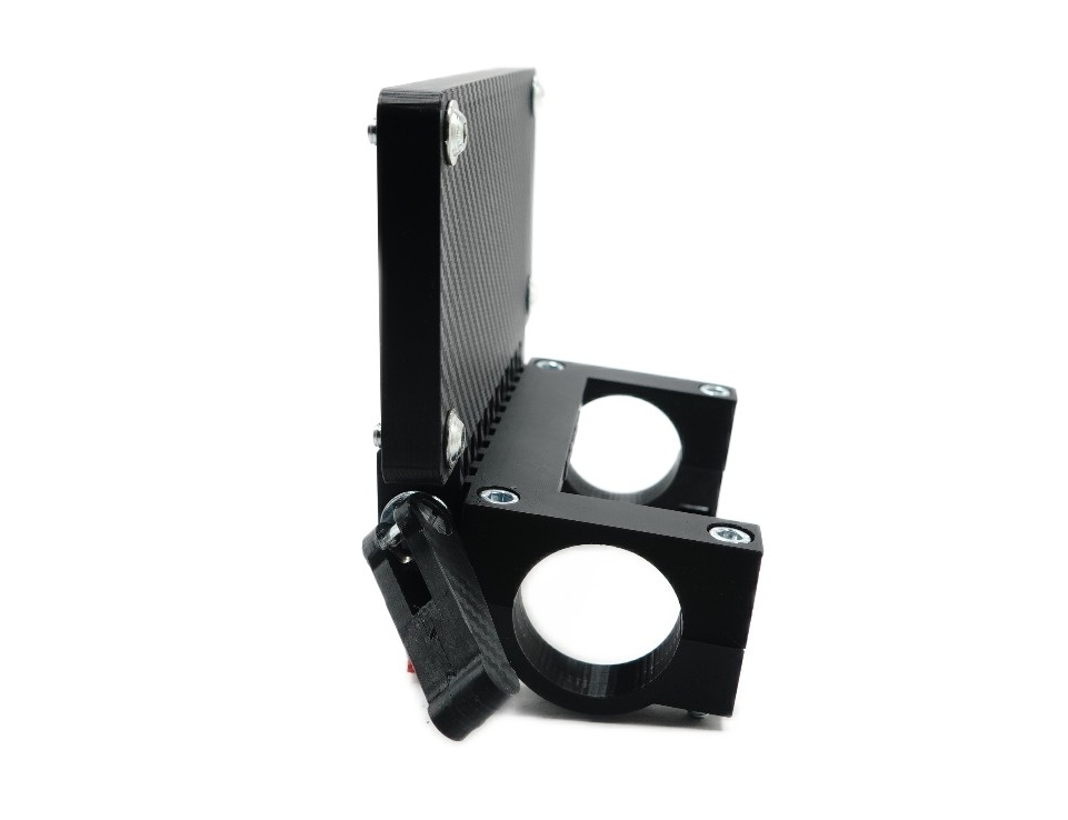 Die Kennzeichenhalterung wird direkt am vorderen Rahmen verschraubt, ohne weitere Rohrschellen oder sonstige störende Befestigungen.