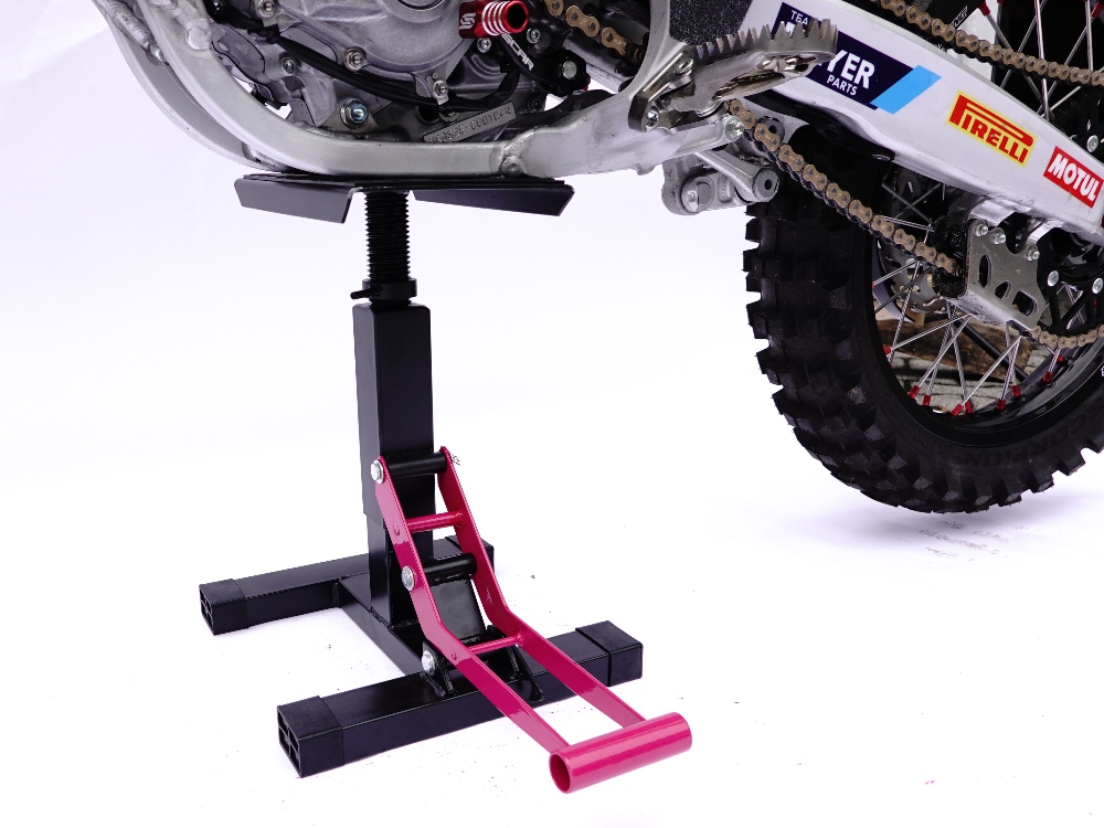 Die große Gummierte Auflagefläche von 27 x 16 cm schützt den Rahmen vor Kratzer und ein verrutschen des Motorrades.