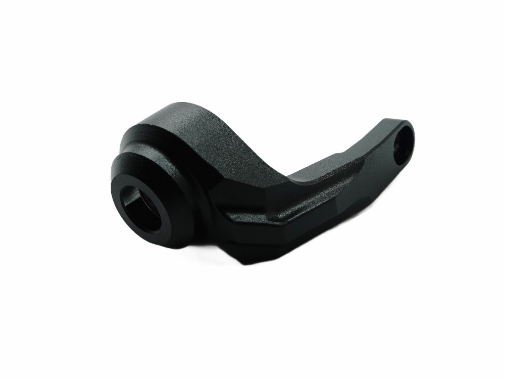 Die Abstützung der Schaltwelle wird aus hochfesten Aluminium Material gefräst und schwarz eloxiert.